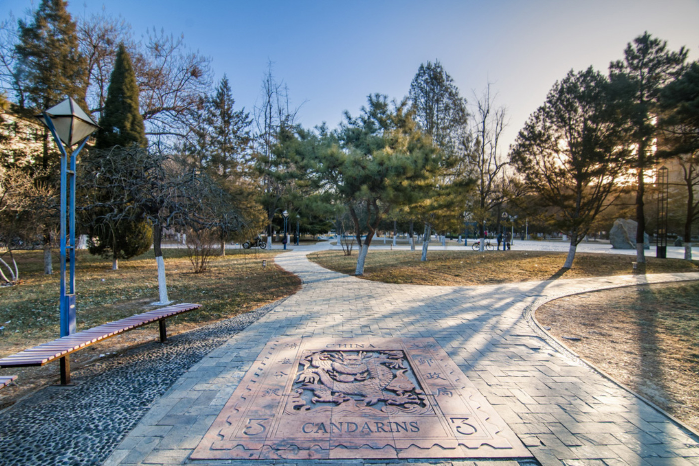 大龙邮票-在主广场园路上铺装着由大理石雕刻的大龙邮票,这是清朝时发行的邮票,也是我国历史上第一枚由国家正式发行的邮票。