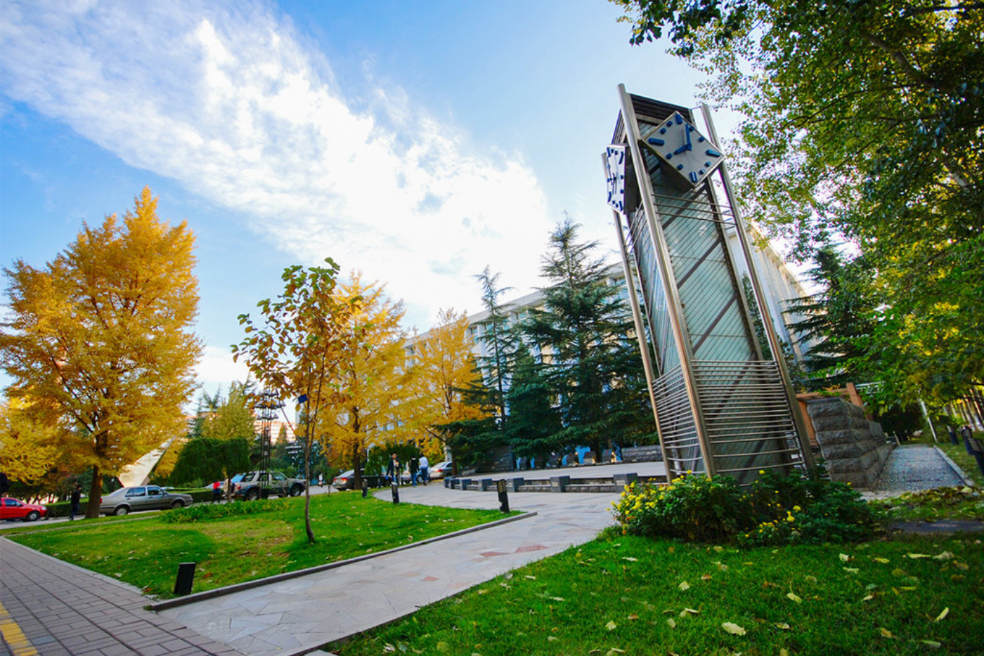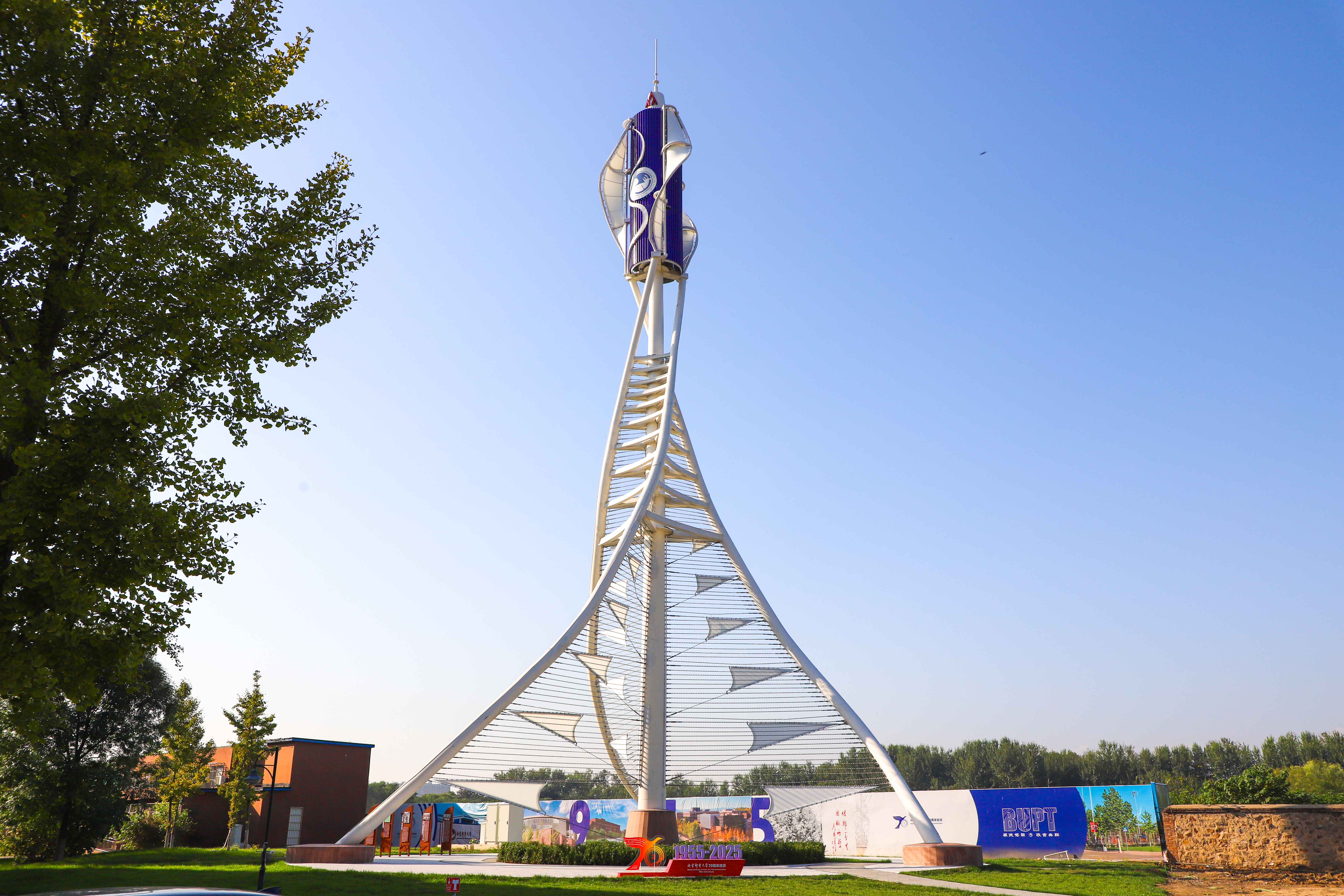 甲子钟雕塑坐落于沙河校区国脉西路与鸿雁路交汇处。雕塑由六块基石相托构成,以发散的光线构型自下而上依次升起,代表六十甲子的六段时光,记录北邮六十年蓬勃发展的历程、硕果累累的成就以及互联网时代的光明前途。