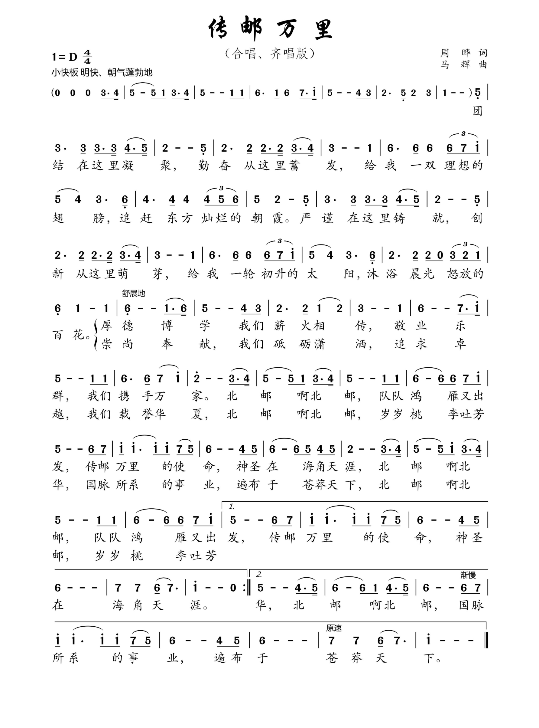 点击下载北京邮电大学校歌《传邮万里》